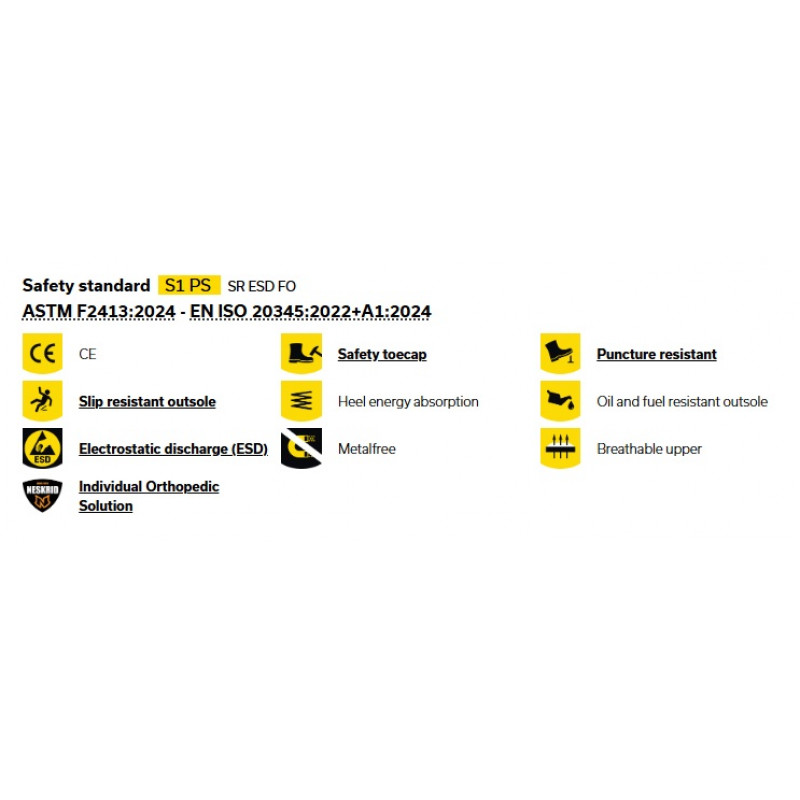 Відповідають ASTM F2413:2024, EN ISO 20345:2022+A1:2024
