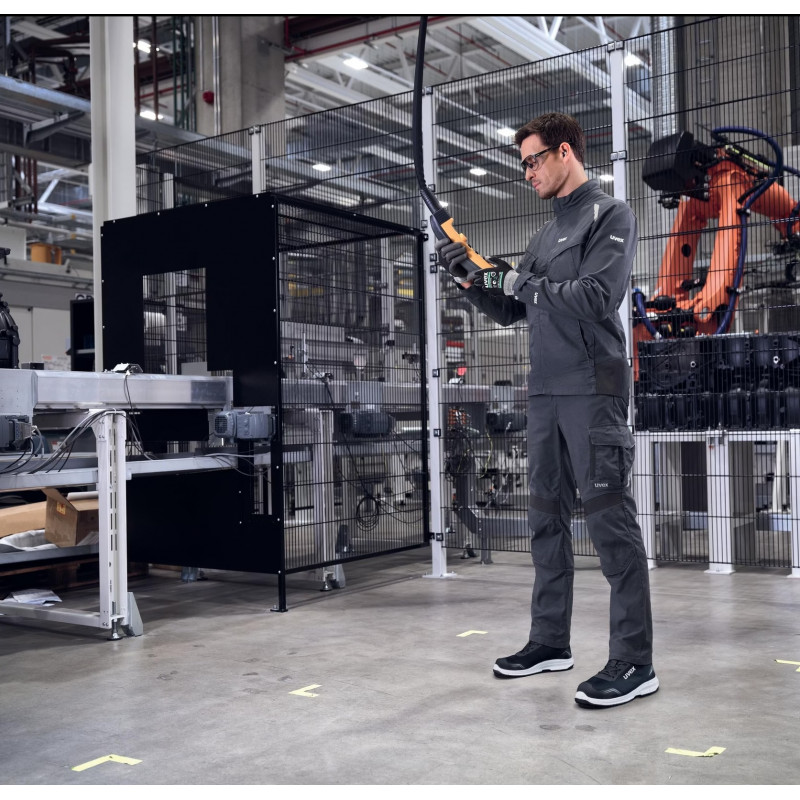 Захісні властивості: стійкість до олії та бензину (FO), антистатичне взуття (A), поглинання енергії навколо п'яти (E), опір ковзанню SR, захист від електростатичного розряду (ESD), короткочасна термостійкість до 120°C
